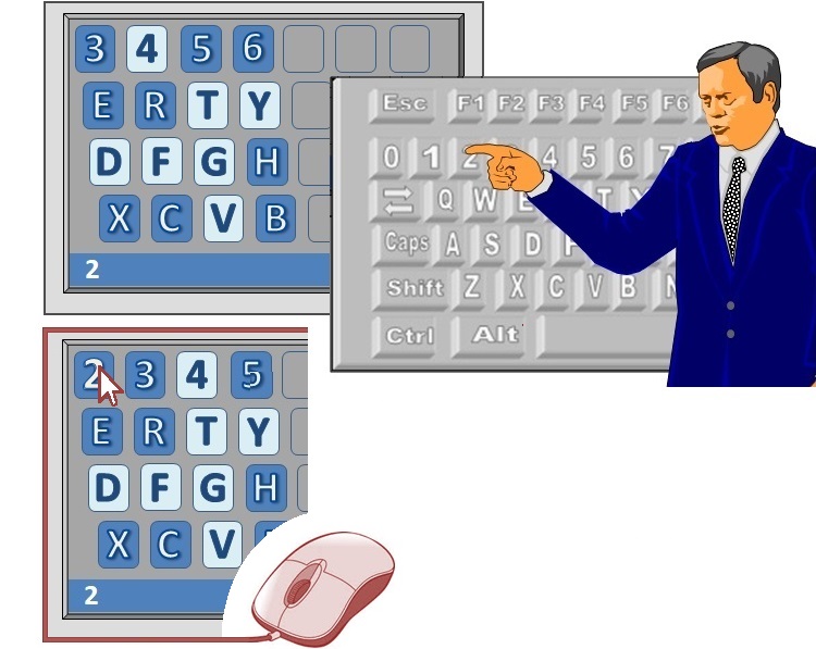 ⓘ Napjainkban már standard beviteli mód az egér általi rámutatás, vagy az érintőképernyő vezérlési lehetőségek. A termékfejlesztő döntése alapján lehet ez (is) a User input lehetősége, mert ez nem jelent különösebb fejlesztési költséget. Azonban ami ez esetben lényegi: egy-egy adatbeviteli fázisban a variációszám nem korlátozódik a gombok számára.