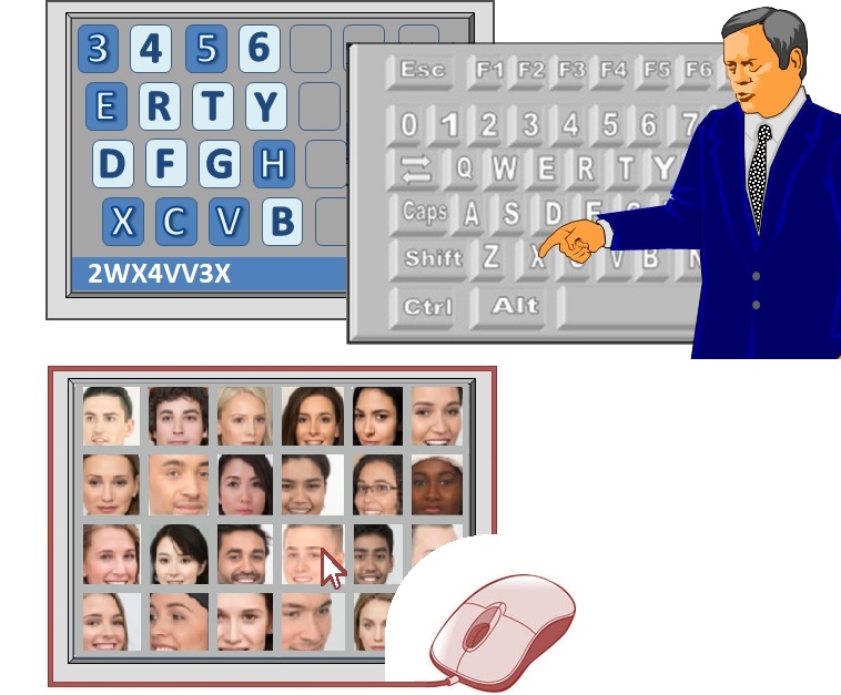 ⓘ Háttérben ekkor egy erős detektáló mozzanat is beépíthető: a GUI-n célzottan figyelem-koncentráló képi elemek jeleníthetők meg, amelyek különféle User esetén (a nem, rassz, hovatartozás… szerint) különféle szemmozgást eredményeznek. Ez már azelőtt lebuktathatja a Támadót mielőtt még egy valós gombnyomás tett volna.